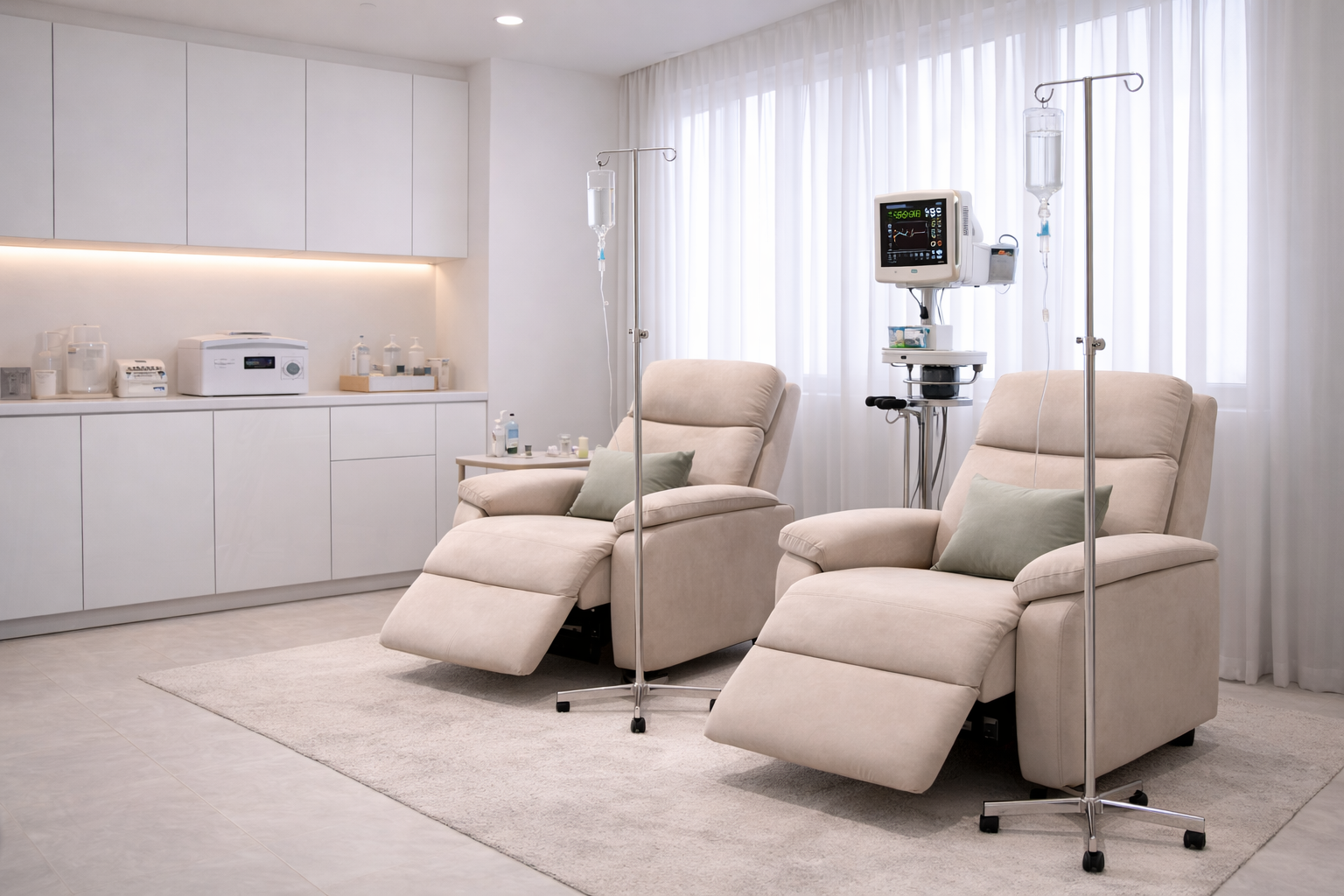 - Перед инфузией специалист уточняет жалобы, собирает анамнез, при необходимости рекомендует базовые анализы и оценивает возможные ограничения.